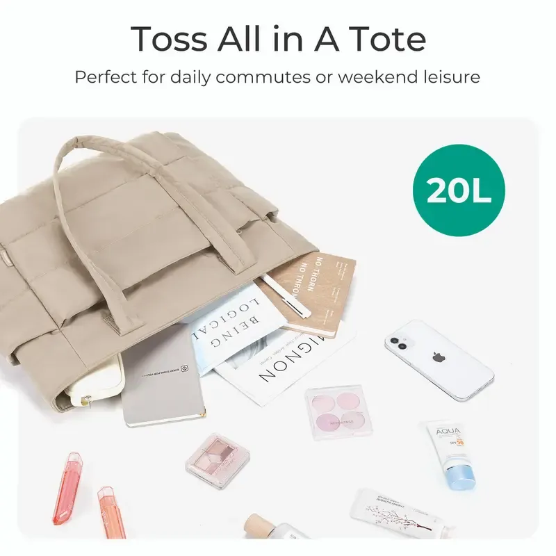 Puffy Bubble Tote Bag 3 Sizes for Women Quilted Laptop Shoulder Handbag, Lightweight Work Tote with Multiple Compartments for Travel & Work Organize Zipper Closure Durable Tote bag